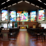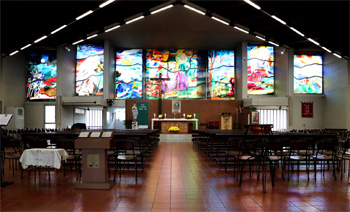 Edificata nel 1968 – 1969, la Parrocchiale è collocata al margine di un incrocio molto trafficato in un’area ad alta densità abitativa. Tali caratteristiche topologiche hanno influenzato il progetto fino a decidere di arretrare l’intera costruzione rispetto alla strada per facilitare un percorso pedonale o una sosta, mentre la sua volumetria, a gradonate, non interferisce con le masse imponenti dei caseggiati circostanti.