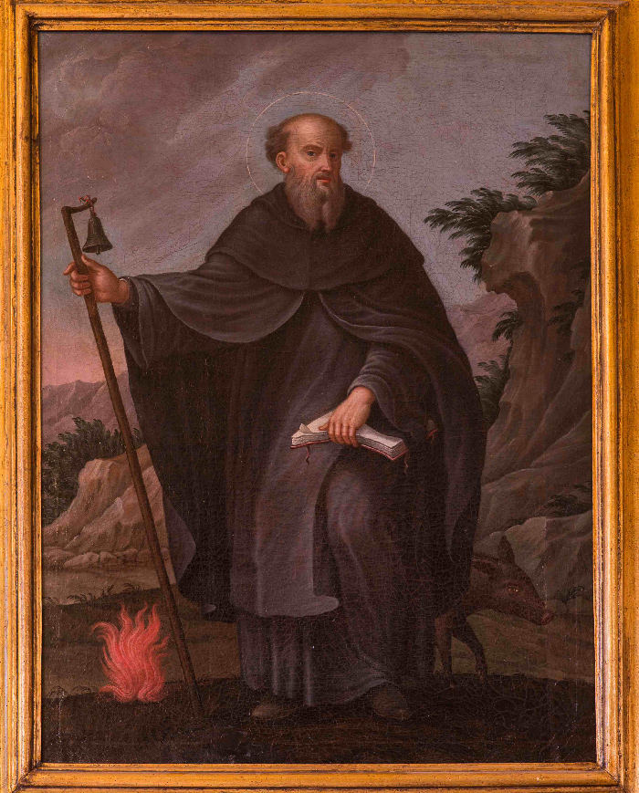 A sinistra dell’abside, vi è una tela a olio di pittore ignoto raffigurante sant’Antonio abate dell’inizio del 1700, un tempo pala d’altare prima dell’acquisto del quadro del Dehò. Il Santo, in piedi in un paesaggio roccioso, tiene con la destra un bastone a “L” con appesa una campanella; la sinistra regge un libro aperto appoggiato al ginocchio; una fiamma è sul terreno a sinistra; a destra della figura, spunta un maiale.