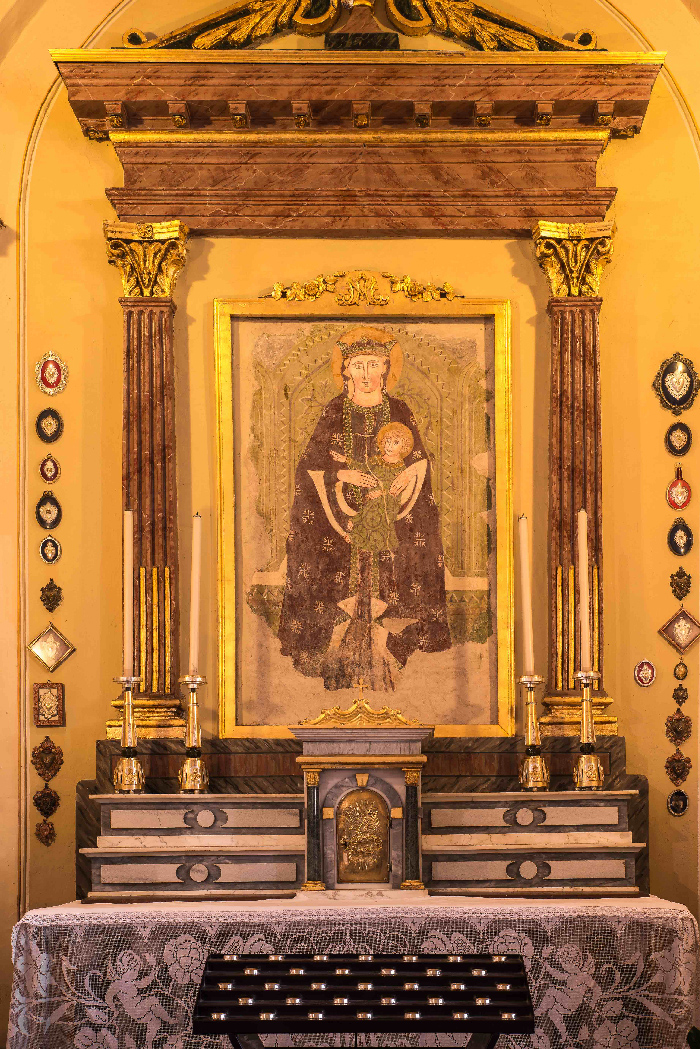 Seconda Cappella a destra: racchiude l’opera più significativa e preziosa sia per motivo di devozione sia per l’aspetto storico-artistico. Alla parete l’affresco della Madonna col Bambino del XIII sec., “Beata Vergine delle Grazie-Madonna di Sant’Ambrogio” che in origine era conservato nell’antichissima Chiesa di Sant’Ambrogio (sec. X -XI) che fu demolita agli inizi del XIX secolo. Per salvare l’immagine venerata dai fedeli, il 18 aprile 1805 l’affresco fu staccato dalla parete e traslato alla parrocchiale di Tornata. All’esterno della chiesa sul lato destro vi è una lapide murata che ricorda l’evento. Nel 1976 l’allora parroco don Renzo Sbernini, costatando le cattive condizioni di conservazione dell’affresco, dovute all’umidità, al fumo delle candele, alla generale usura del tempo, si fece promotore del restauro della veneratissima effigie. Sotto il dipinto cinquecentesco comparve una regale e materna figura di Madonna, di scuola bizantina, databile intorno al XIII – XIV secolo, che era quello autentico della Beata Vergine delle Grazie, la Madonna di Sant’Ambrogio, ritenuta miracolosa perché la tradizione dice che apparve a un bambino il 07 maggio 1521.