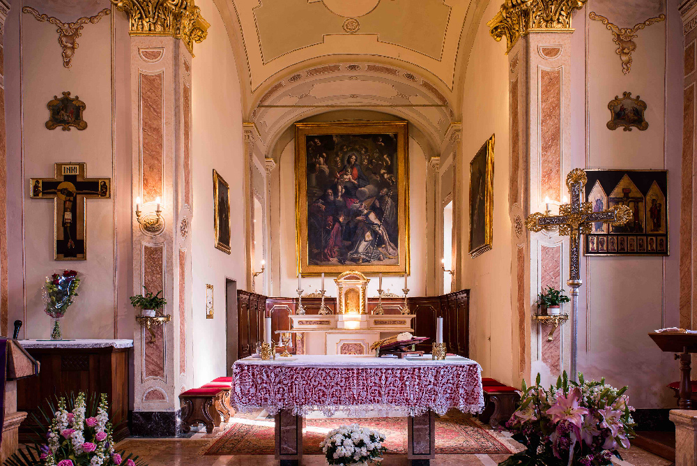 Lungo tutte le pareti dell’edificio sacro si trovano antiche stampe della Via Crucis risalenti alla fine del 1700, inizio 1800.