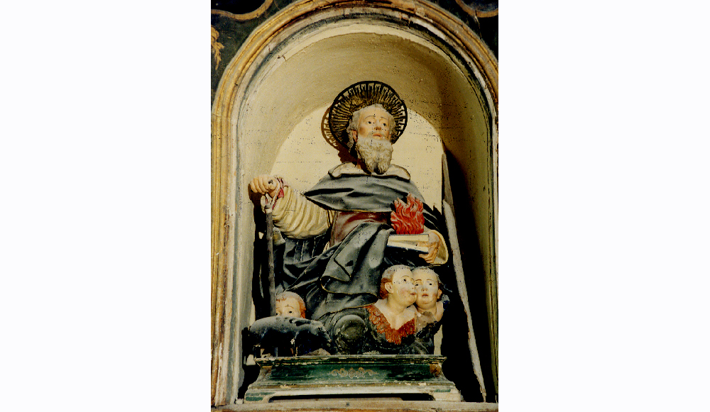 La chiesa conserva una statua lignea dipinta e dorata di 118 x 67 x 50 cm.