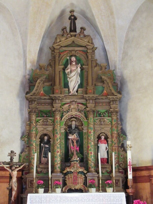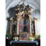 Sempre sull’altar maggiore, sulla mensa è collocato un tabernacolo ligneo dorato e scolpito attribuito a Giovanni Paolo Gamba detto “Zampol” (Bragarezza, 1723 – Forno di Zoldo, 1802).Fotoadestra.
