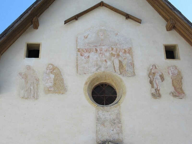 Gli affreschi sulla facciata risalgono agli ultimi anni del XVIII secolo e sono stati restaurati all’inizio degli anni Ottanta del Novecento.
