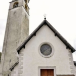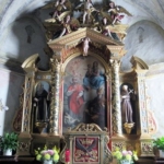 VAL DI ZOLDO (BL), frazione Mareson. Chiesa di San Valentino con statua di s. Antonio abate, inizi XVIII secolo