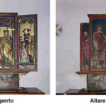 L’alzata dell’altare è costituito da due nicchie laterali ospitanti le statue, a sinistra, di Sant’Antonio abate e, a destra, di San Francesco d’Assisi, mentre nella parte alta spicca la figura del Cristo glorioso tra quattro angeli.