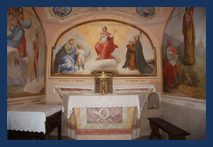 Contiene un dipinto murale, che fa da pala all’unico altare e che raffigura “Santa Lucia tra i Santi Quirico e Giulitta e sant’Antonio abate”.