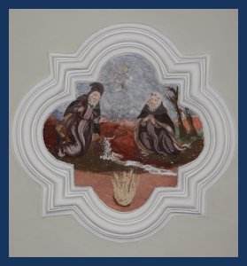 Alle pareti si trovano dipinti murali raffiguranti Storie di Sant’Antonio abate.