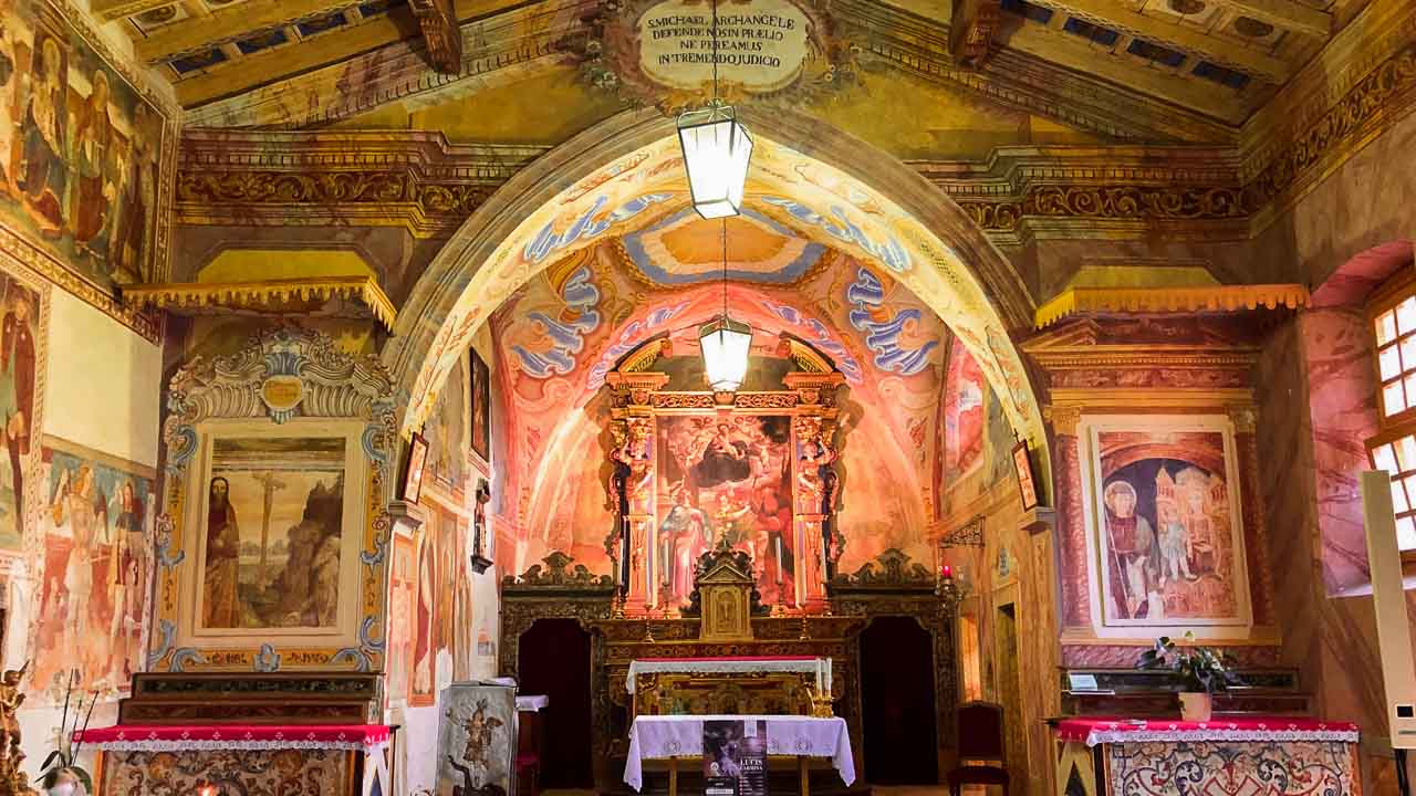 All’interno dell’edificio chiesa si ammirano pregevoli affreschi quattrocenteschi ed altre opere sino al XIX secolo.