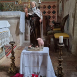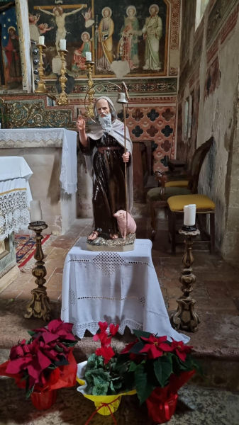 Una statua di sant’Antonio abate viene esposta in chiesa in occasione della festa del santo nel mese di gennaio.