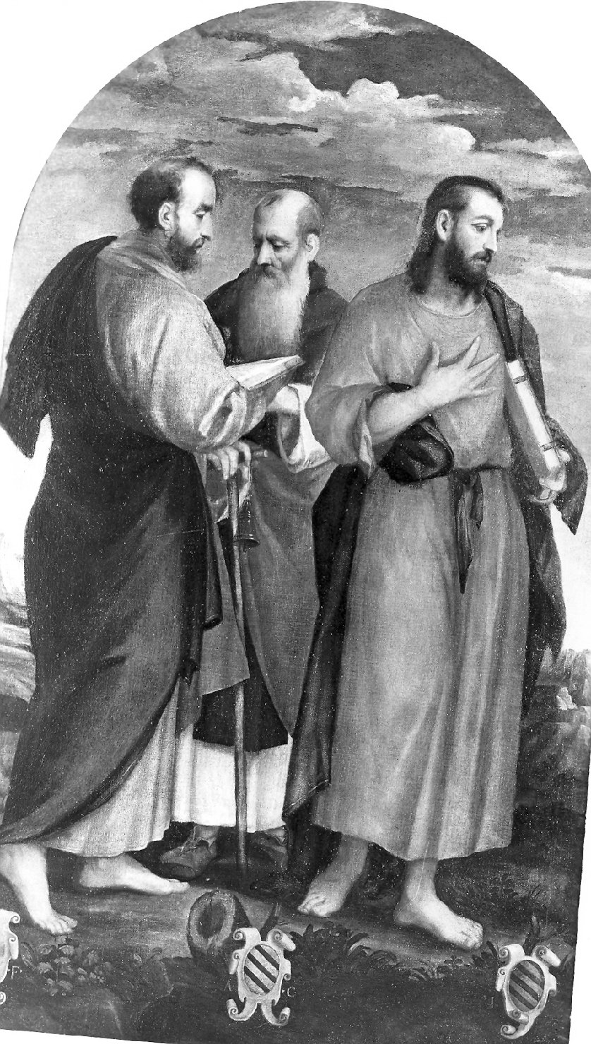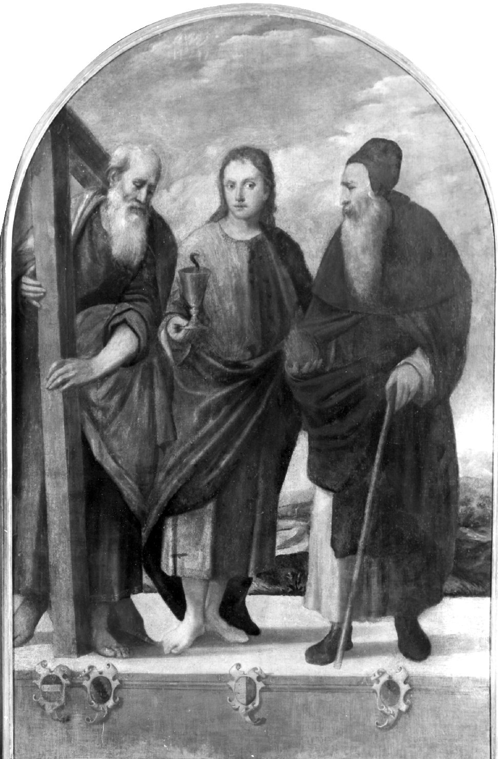 3 Olio su tela di 202 x 132 cm, “Santi Andrea, Giovanni Evangelista e Antonio abate”.