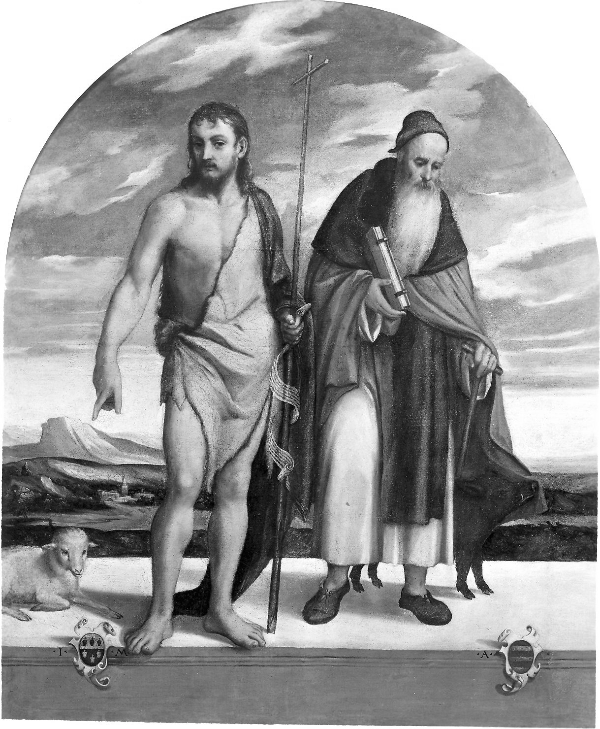 4 Olio su tela centinata di 181 x 150 cm, “Santi Giovanni battista e Antonio abate”