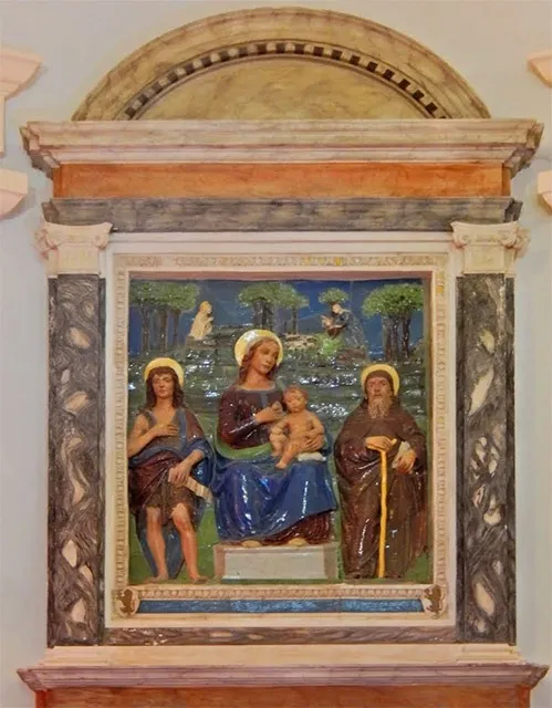 Al centro dell’abside è posta una grande pala in terracotta invetriata policroma di 185 x 144 x 19 cm, attribuita alla bottega di Benedetto Buglioni (1459-1521), prolifico diffusore della formula dei Della Robbia, e realizzata tra la fine del XV e l’inizio del XVI secolo.