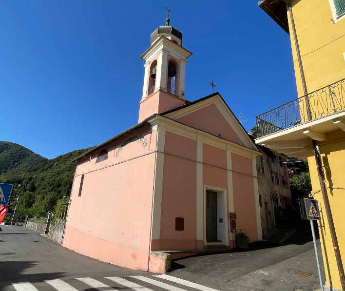 L’oratorio, che era un tempo collocato fuori dal centro storico, all’estremo sud del paese, può può quasi sicuramente essere identificato con la cappella rurale menzionata nel 1582 da mons. Bossi: oratorium vicinum portae Vultaggi.